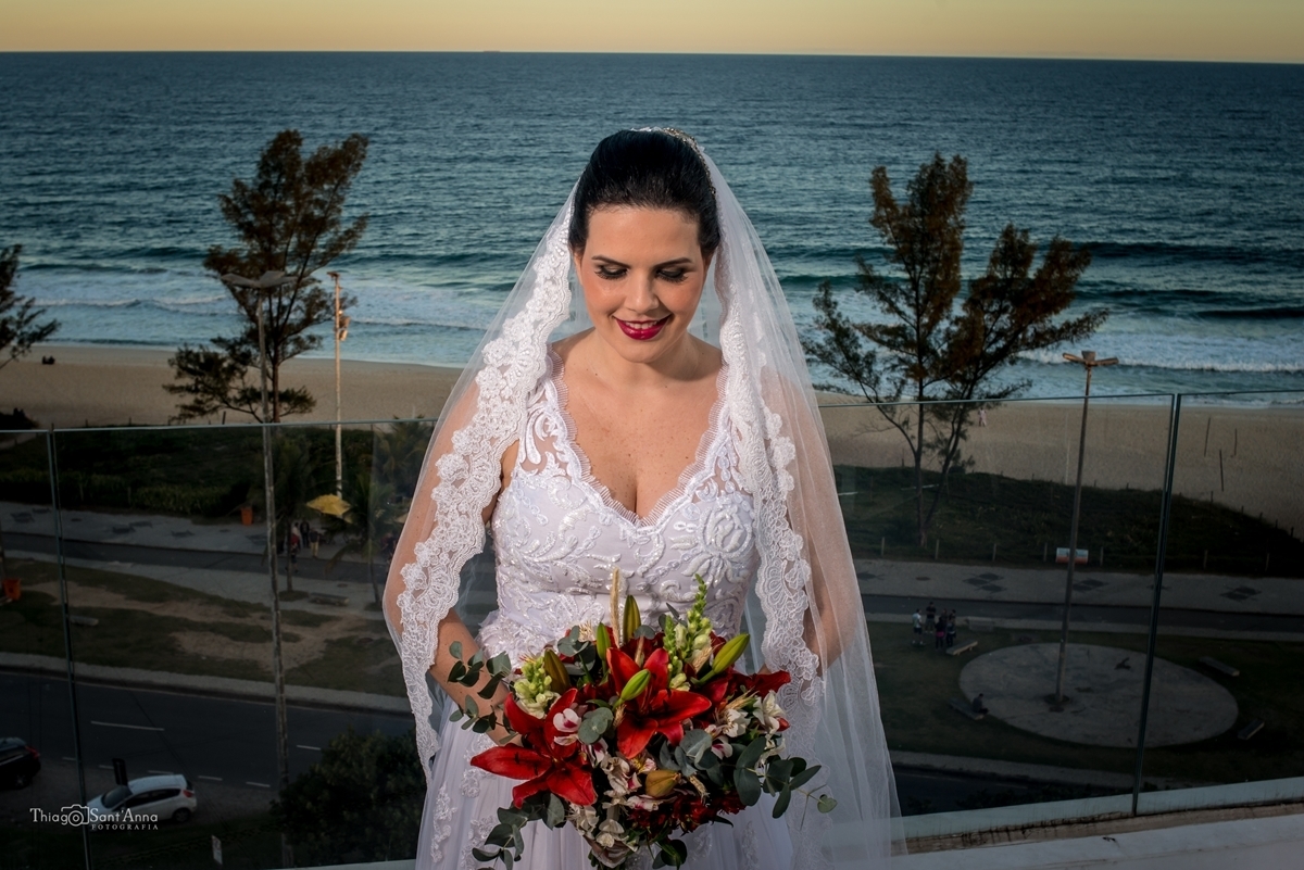 Noiva de mantilha e Buquê Assimétrico Vermelho