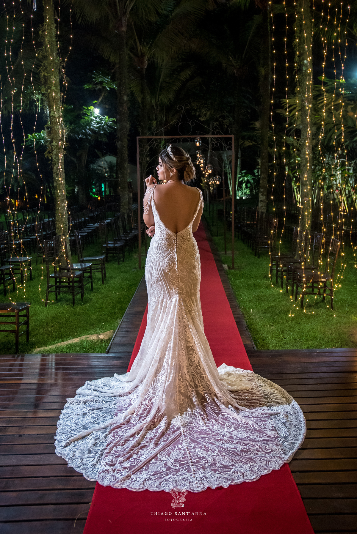 cobertura desfile ambiente externo tapete vermelho estrutura dourado vegetação palmeiras gramado velas cadeiras